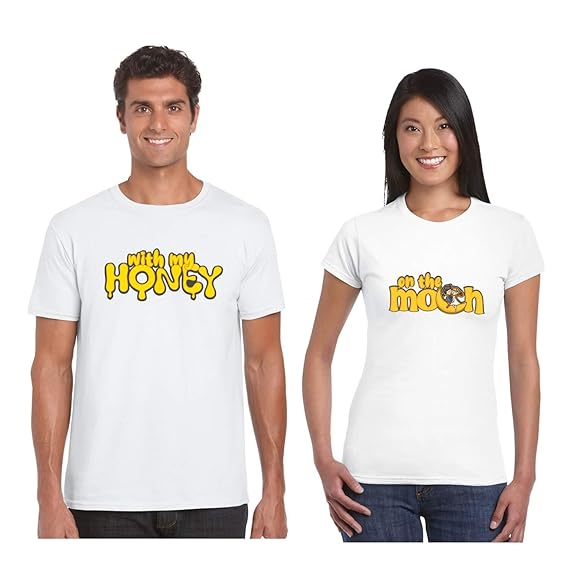 Buy Theyayacafe Yaya Cafe Wedding Honeymoon Couple T Shirts Bride Groom Printed With My Honey On The Moon Premium Cotton Men Women White Mxxl Wxxl At Amazon In